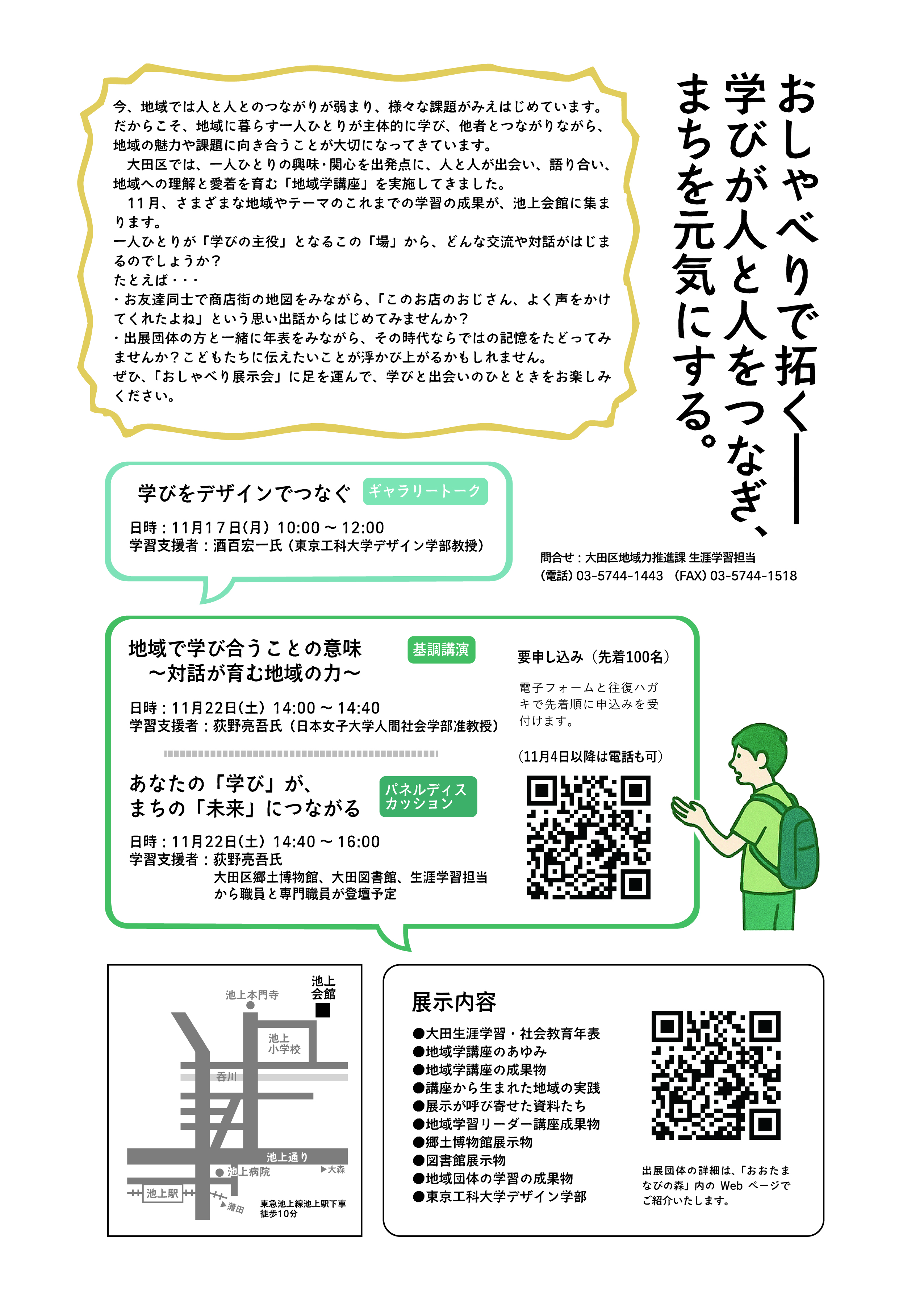 11月、さまざまな地域やテーマのこれまでの学習の成果が、池上会館に集まります。