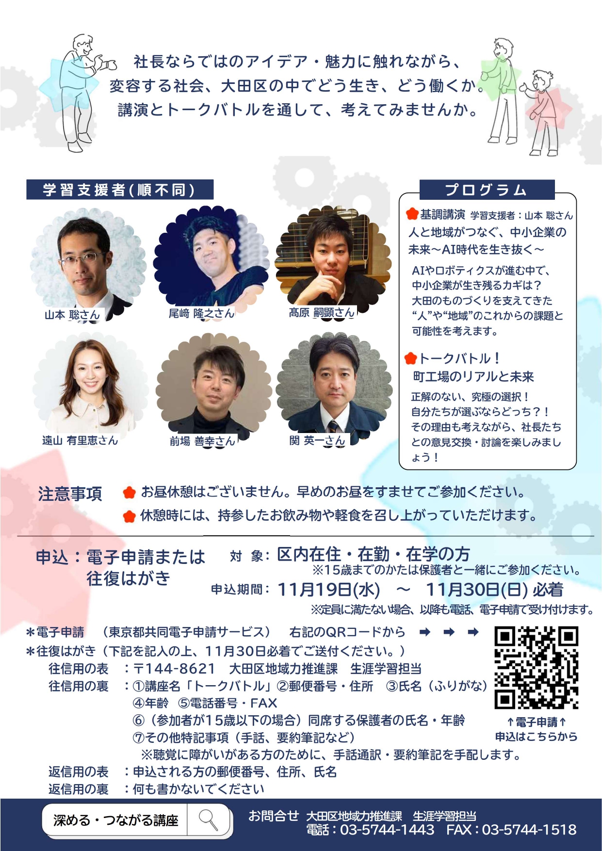 大田区の中小企業経営者が、生涯学習講座(深める・つながる講座)を企画しました!